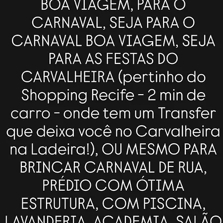 Pobliskie atrakcje to Park Dona Lindu, 2 km od 1-pokojowego apartamentu oraz Centrum handlowe w Recife - 1 km stąd. Muzeum miejskie w Recife znajduje się 15 min jazdy od apartamentu o powierzchni 25 m².